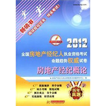 | 2012全国房地产经纪人执业资格考试命题趋势权威试卷:房地.. | 房地产经纪.. | 华中科技大学出版.. | ¥28.00¥16.80 |
