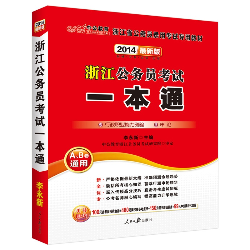 中公最新版2014浙江省公务员录用考试专用教材:浙江公务员考试一本通(附..