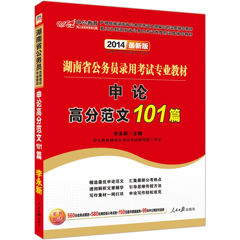 中公最新版2014湖南省公务员录用考试专业教材:申论高分范文101篇(赠价..