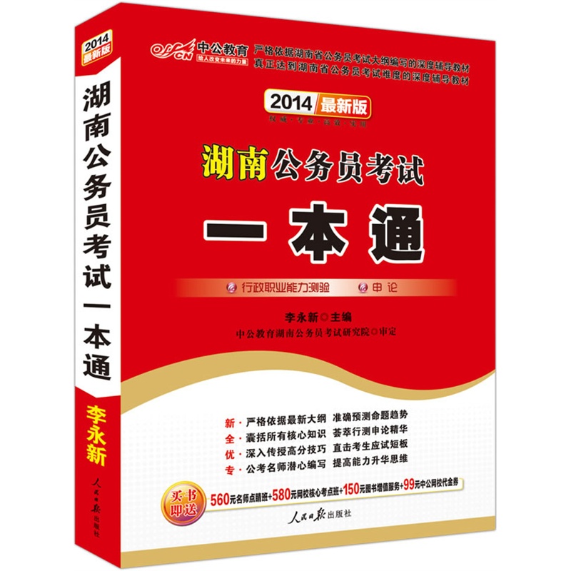 中公最新版2014湖南公务员考试:一本通(赠价值560元名师点睛班+580元网..