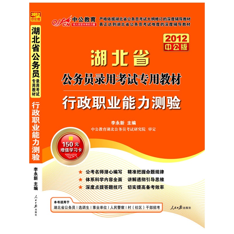 2012中公版湖北公务员考试-行政职业能力测验(赠送价值150元的图书增值卡..