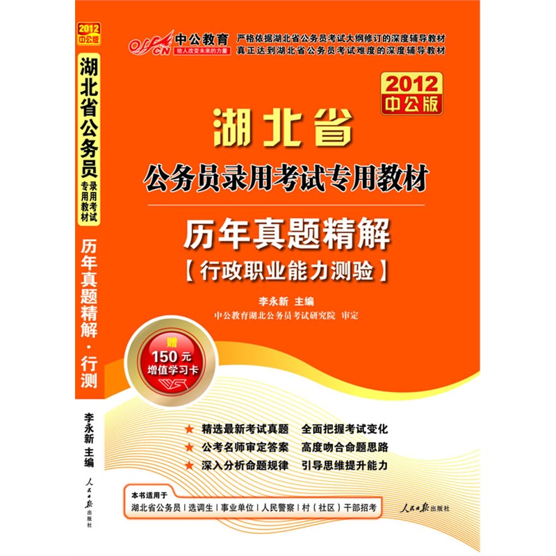 2012中公版湖北公务员考试-历年真题精解行政职业能力测验(赠送价值150元..