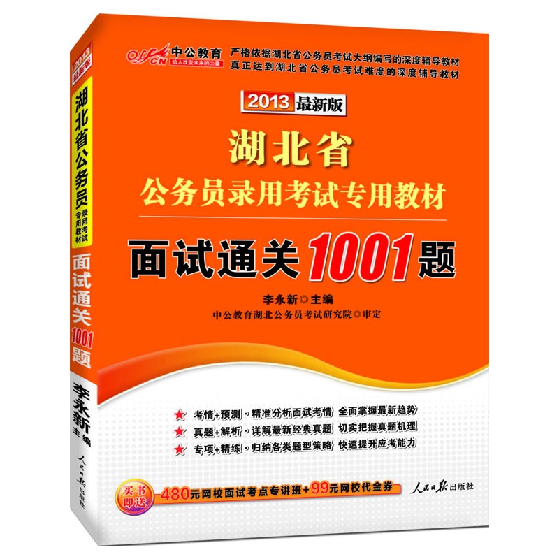 中公最新版2013湖北省公务员录用考试专用教材:面试通关1001题(附价值48..