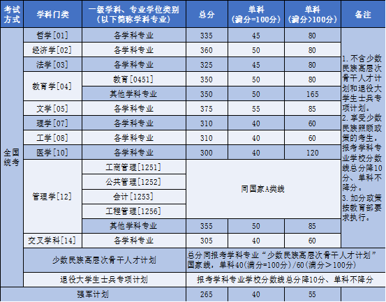 *享受加分政策考生:符合下列条件之一后,3年内报名参加全国硕士研究生招生考试的考生,可申请享受初试总成绩加10分,同等条件下优先录取。符合多项加分项目的考生,分值不得累加。