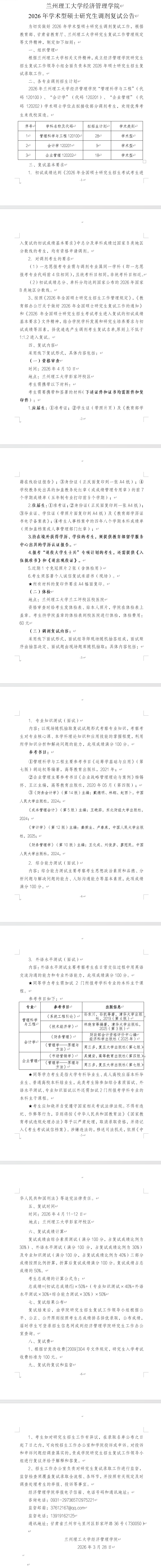 2026年兰州理工大学经济管理学院硕士招生调剂信息