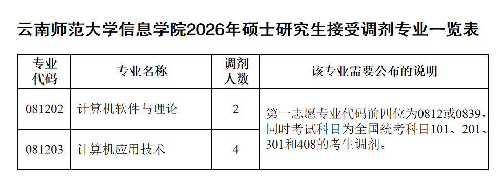 信息来源:《云南师范大学2026年硕士研究生调剂公告》(https://grs.ynnu.edu.cn/info/1035/1484.htm)以及《云南师范大学2026年硕士研究生调剂公告(一)》(https://grs.ynnu.edu.cn/info/1035/1494.htm)。